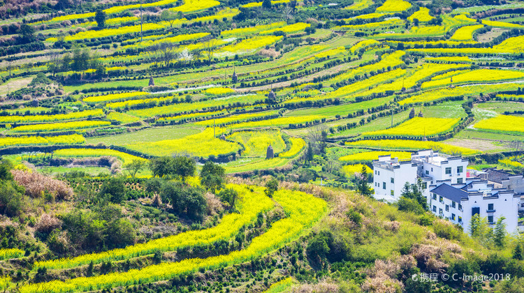 【婺源篁岭】:“ 窗衔篁岭千叶匾,门聚幽篁万亩田 ”,篁岭村有着500年历史,有全国闻名的“晒秋”农俗特色景观,以其地多篁竹而得名;景区群山环抱,房屋鳞次栉比,梯田层层叠叠; 春季,梯田里近千亩油菜花集中开放,与桃花、梨花交相辉映,美不胜收(游览约2.5小时)。