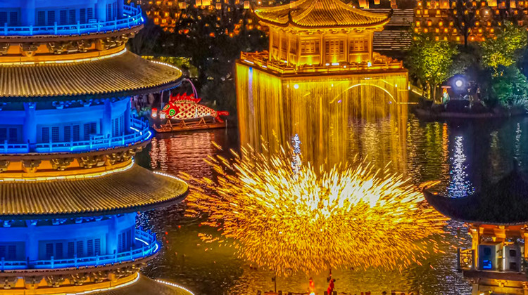 非遗打铁花 观赏地点:金水阁水上舞台