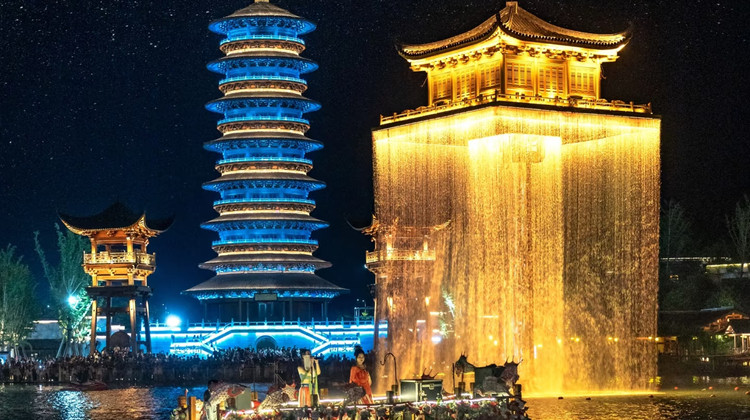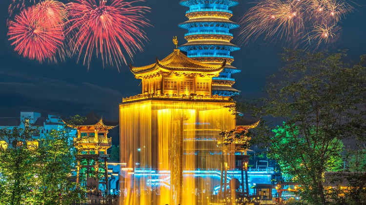 夜游:绳金塔内广场有3D裸眼秀表演;秋水广场20:00有音乐喷泉;20:30有吉尼斯世界纪录灯光秀可以观看,(下雨天除外)。