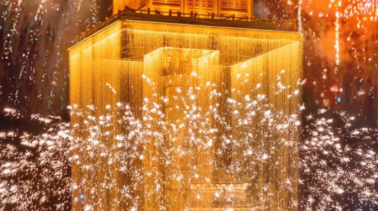 (晚上可自行前往参观游览【秋水广场】(搭乘地铁一号线至秋水广场站即可):位于赣江之滨,与滕王阁隔江相望,再现了千古名篇《滕王阁序》中的"落霞与孤鹜齐飞,秋水共长天一色"的意境--秋水广场正是由此而得名。红谷滩秋水广场上音乐灯光喷泉引人注目,音乐喷泉群,喷水池面积1.2万平方米,主喷高度达128米,是南昌市一靓丽景观。人们可一边欣赏音乐一边观看滕王阁美景。)